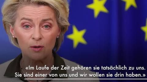 Im Laufe der Zeit gehören sie tatsächlich zu uns. Selbst Länder wie Polen und Slowenien die im Prinzip einen beschleunigten Beitritt. Von der Leyen hatte sich am Sonntag für einen EU-Beitritt der Ukraine ausgesprochen.